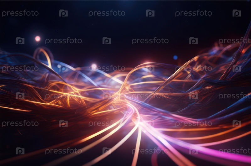 Абстрактные неоновые волокна, переплетенные в яркий гобеленовый узор на черном фоне