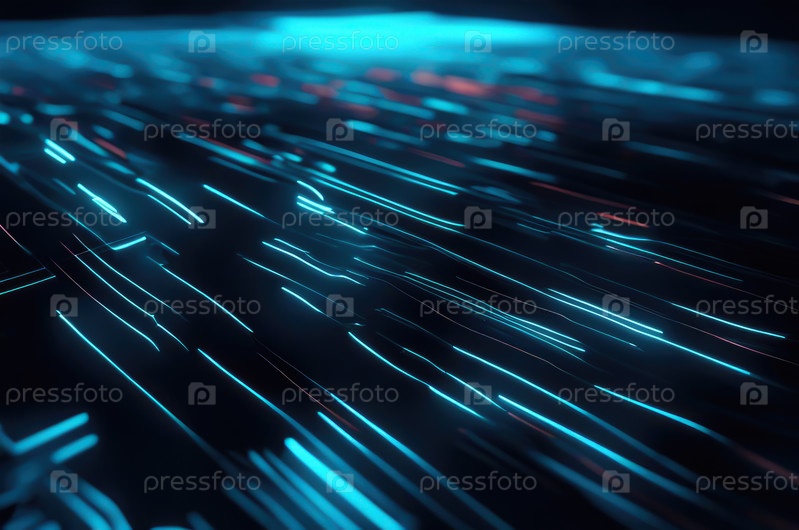 Абстрактный футуристический фон со светящимися цветными линиями, направленными в разные стороны на черном фоне