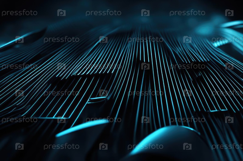 Абстрактный футуристический фон со светящимися цветными линиями, направленными в разные стороны на черном фоне