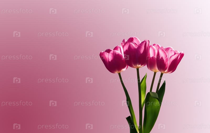 Розовые тюльпаны на пастельном фоне для женского дня и праздников. Копировать пространство