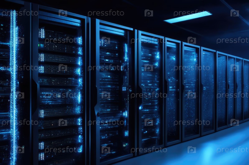 Центр обработки данных с несколькими рядами полностью работоспособных серверных стоек