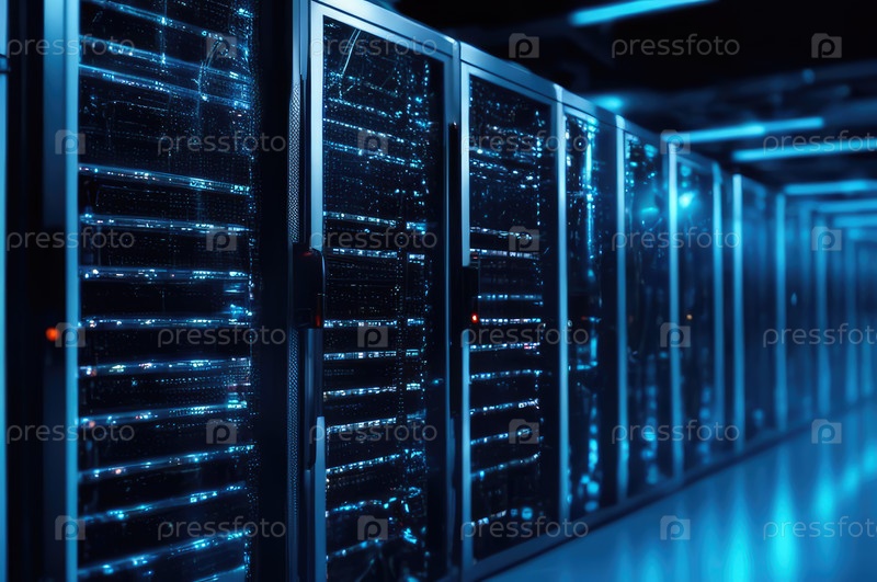 Центр обработки данных с несколькими рядами полностью работоспособных серверных стоек