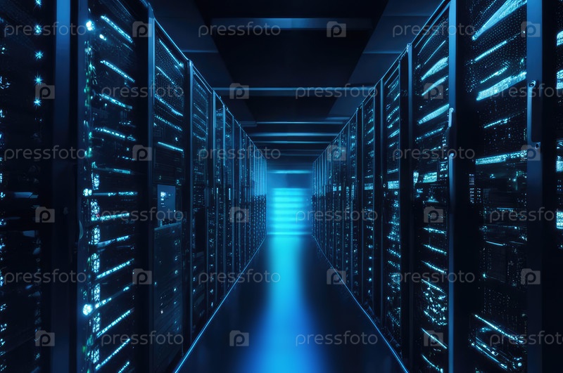 Центр обработки данных с несколькими рядами полностью работоспособных серверных стоек