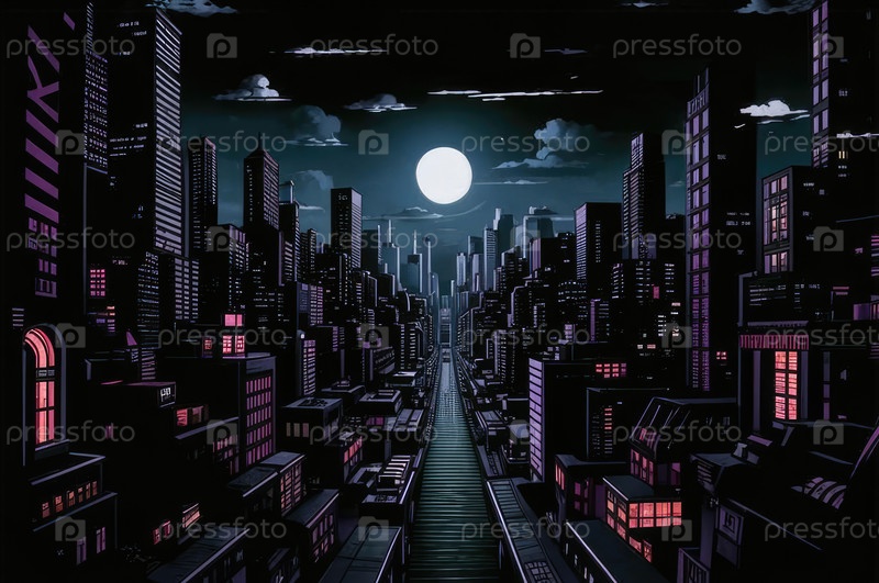 Плоская абстрактная иллюстрация ночного города. Футуристический город. Картинка для общей иллюстрации без деталей