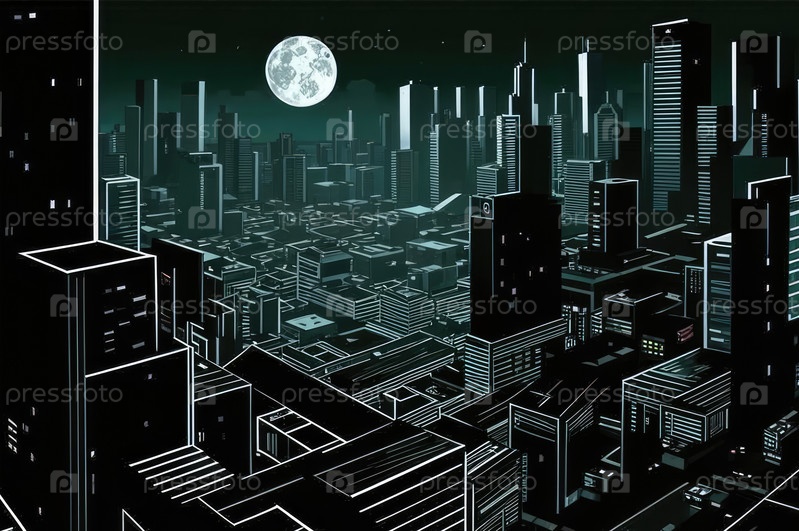 Плоская абстрактная иллюстрация ночного города. Футуристический город. Картинка для общей иллюстрации без деталей