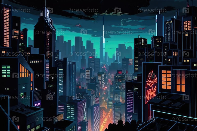 Плоская абстрактная иллюстрация ночного города. Футуристический город. Картинка для общей иллюстрации без деталей