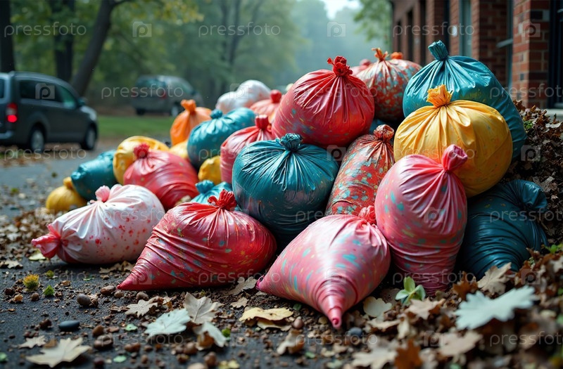 Свалка бытовых отходов, пластиковые пакеты на свалке. Генеративный искусственный интеллект