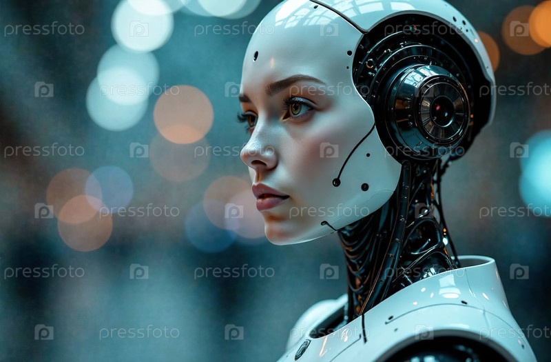 Робот Киборг Гуманоид Женщина Искусственный Интеллект Портрет. Генеративный ИИ