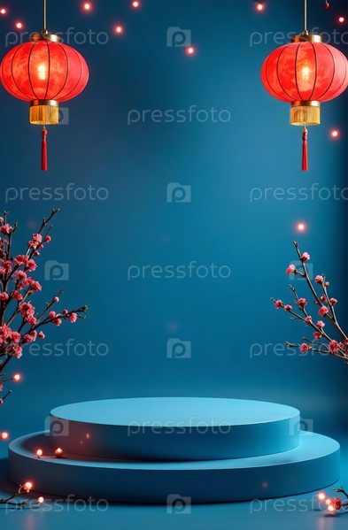 Подиум косметического продукта на синем фоне, свободное место для товаров. Генеративный ИИ