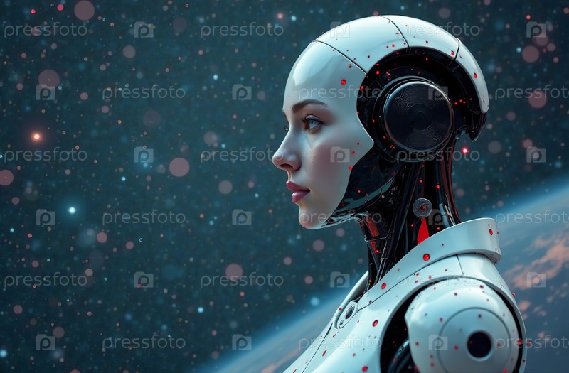 Робот Киборг Гуманоид Женщина Искусственный Интеллект Портрет. Генеративный ИИ