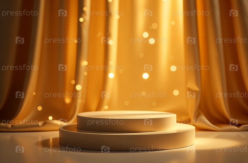 Презентация продукта Подиум золотой Драпировка Рождество Новый год Стенд. Сгенерировано ИИ
