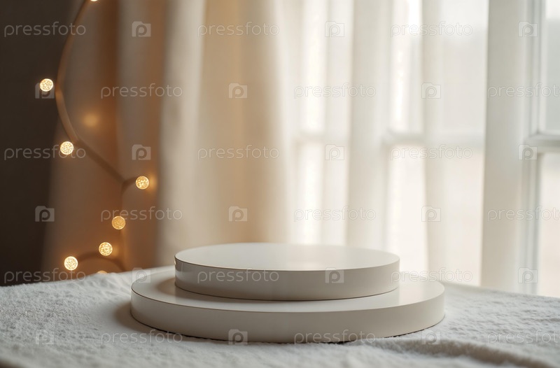 Презентация продукта Подиумное окно Рождественская елка, новогодний стенд. Сгенерировано с помощью ИИ