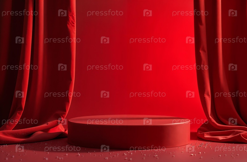 Презентация продукта Подиум красный Драпировка Рождество Новый год Стенд. Сгенерировано ИИ