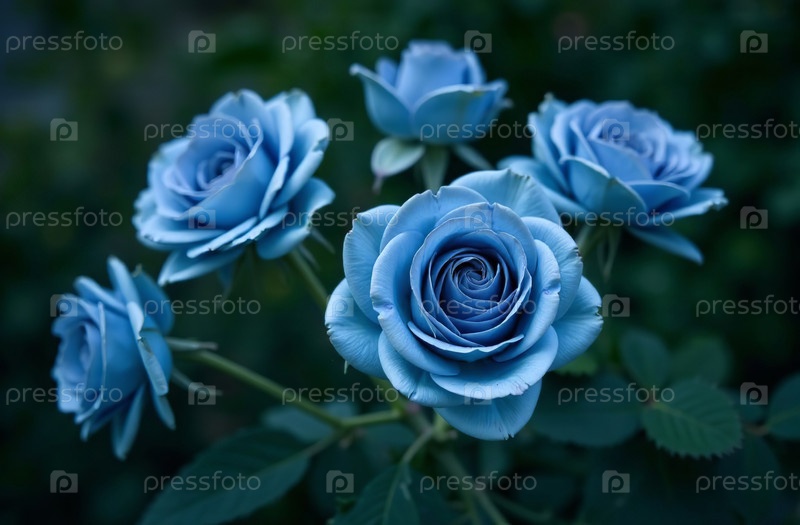 Куст больших синих роз, цветущий цветок за пределами сада, крупный план. Генеративный искусственный интеллект