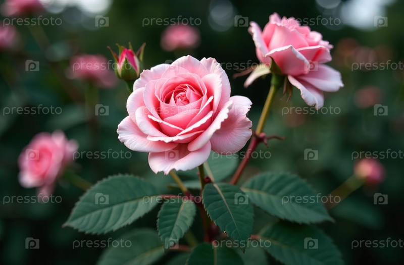 Куст крупных розовых роз, цветущий цветок за пределами сада, крупный план. Генеративный искусственный интеллект