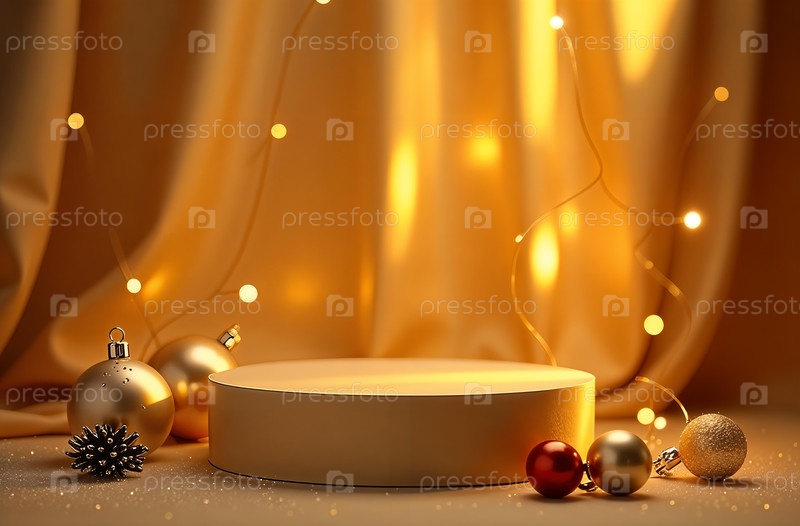 Презентация продукта Подиум золотой Драпировка Рождество Новый год Стенд. Сгенерировано ИИ