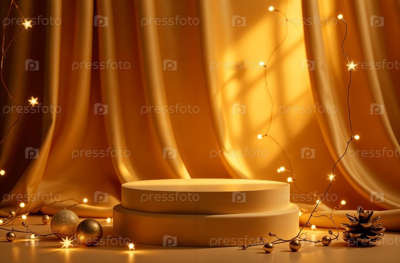 Презентация продукта Подиум золотой Драпировка Рождество Новый год Стенд. Сгенерировано ИИ
