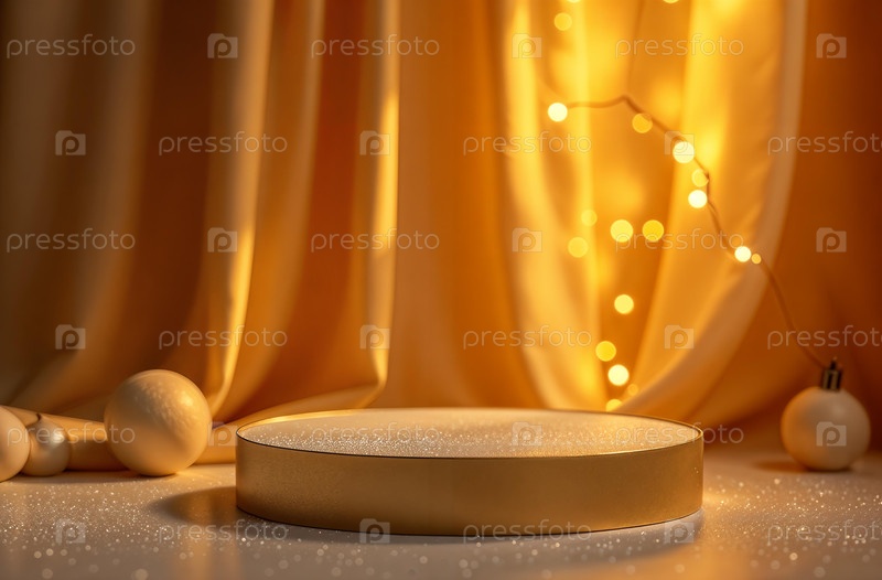 Презентация продукта Подиум золотой Драпировка Рождество Новый год Стенд. Сгенерировано ИИ