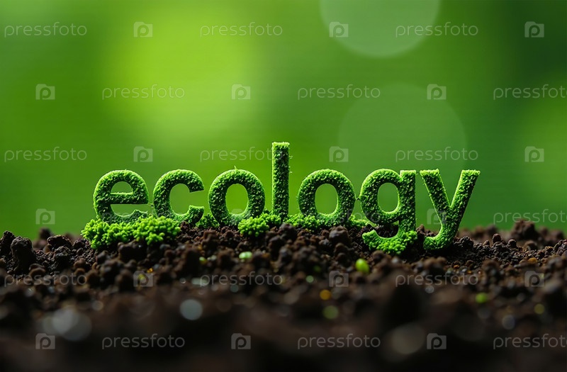 Надпись Экология земля трава росток. Защита окружающей среды. Генеративный ИИ