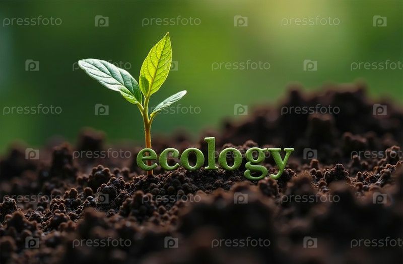 Надпись Экология земля трава росток. Защита окружающей среды. Генеративный ИИ