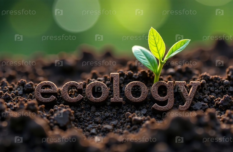 Надпись Экология земля трава росток. Защита окружающей среды. Генеративный ИИ