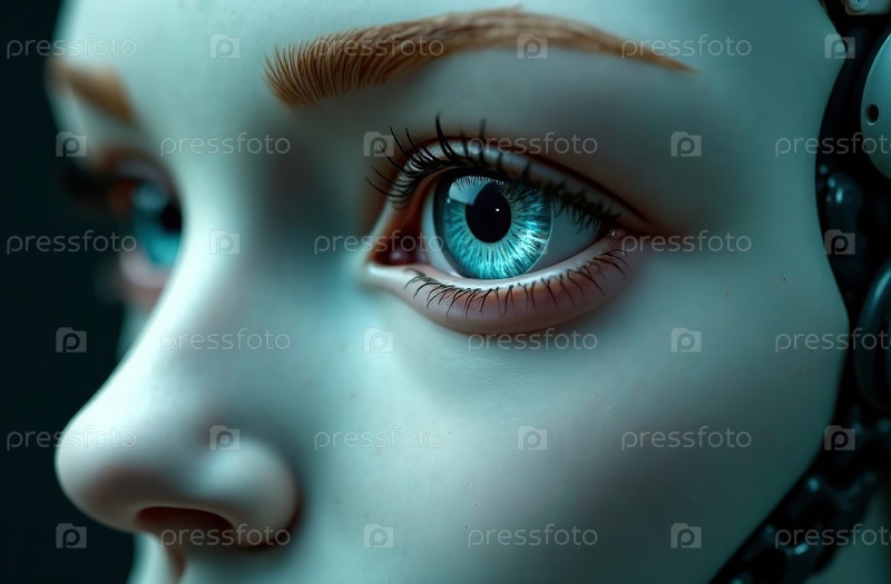 Робот Киборг Гуманоид Женщина Искусственный Интеллект Портрет глаза. Генеративный ИИ