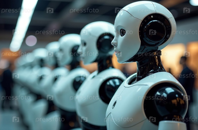 Армия человекоподобных киборгов-роботов выстроилась в очередь. Генеративный искусственный интеллект