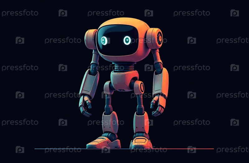 Иллюстрация гуманоидного робота в полный рост на черном фоне. Генеративный искусственный интеллект