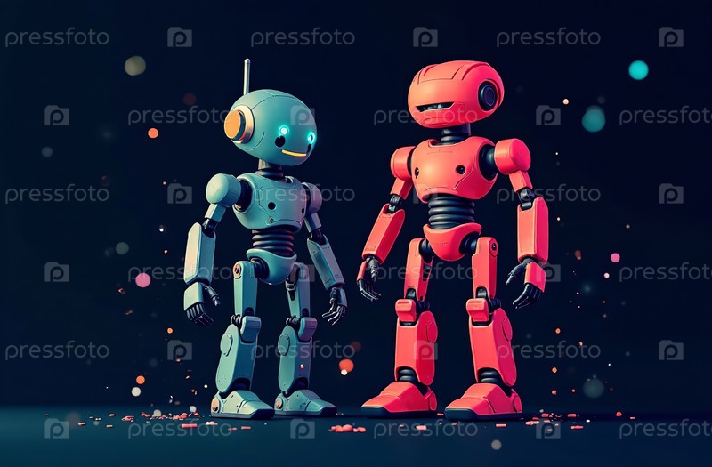 Иллюстрация два гуманоидных робота черный фон изображение. Генеративный искусственный интеллект