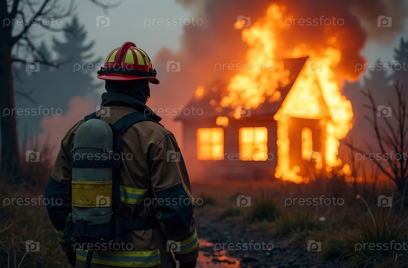 Пожарный в здании пожар фон, аварийно-спасательная служба. Генеративный искусственный интеллект