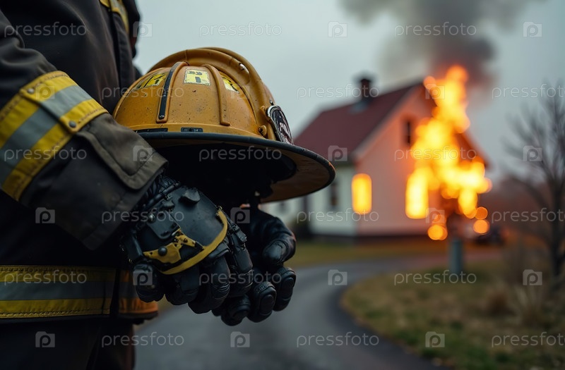Пожарный в здании пожар фон, аварийно-спасательная служба. Генеративный искусственный интеллект