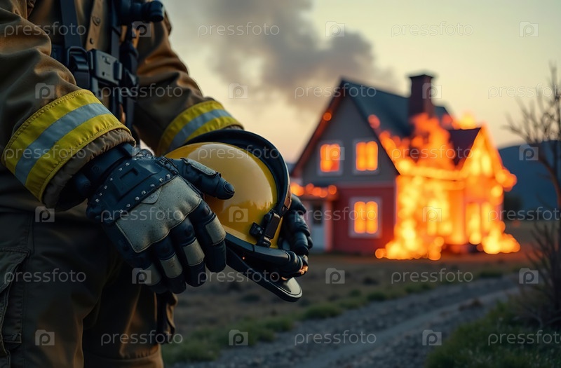 Пожарный в здании пожар фон, аварийно-спасательная служба. Генеративный искусственный интеллект