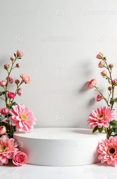 Подиум косметический продукт на белом фоне, свободное место для товаров. Генеративный ИИ