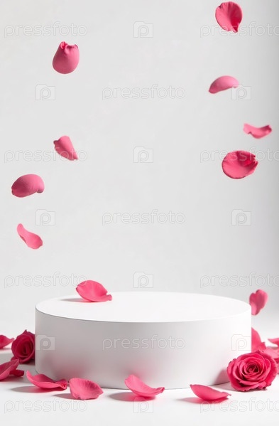 Подиум косметический продукт на белом фоне, свободное место для товаров. Генеративный ИИ