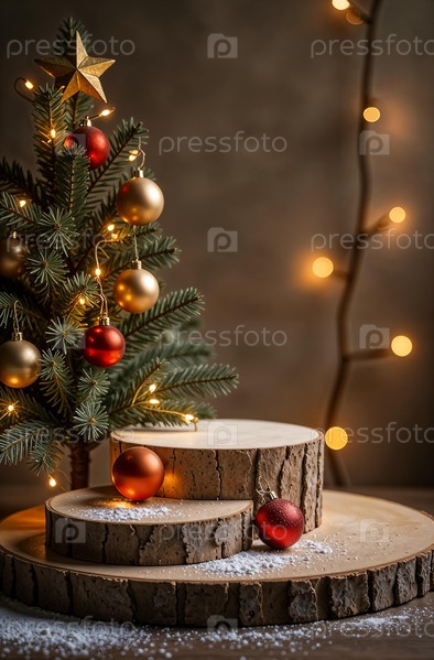 Подиум для презентации продукта, рождественский и новогодний стенд. Продукт, созданный с помощью искусственного интеллекта