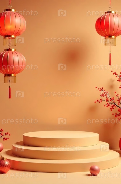 Подиум косметического продукта на бежевом фоне, свободное место для товаров. Генеративный ИИ