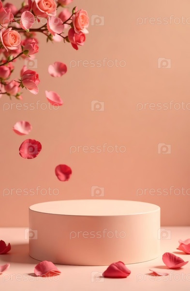 Подиум косметического продукта на бежевом фоне, свободное место для товаров. Генеративный ИИ