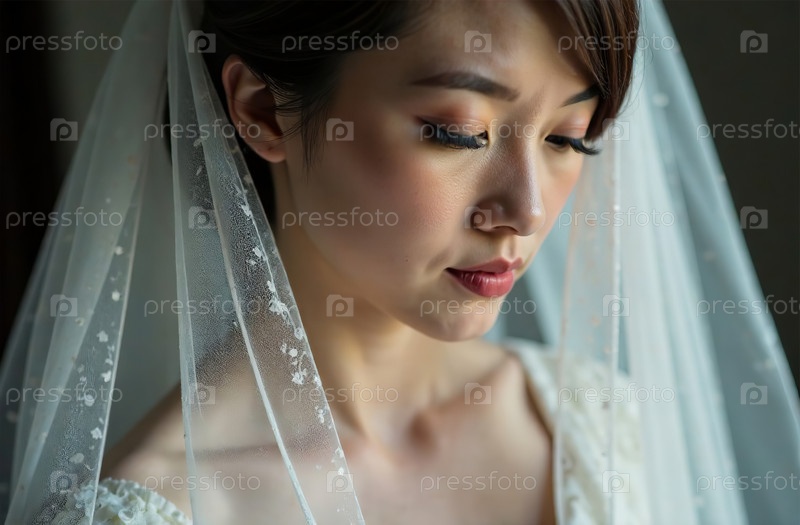 Большой портрет невесты, свадебное платье и фата, подготовка церемонии. Генеративный искусственный интеллект