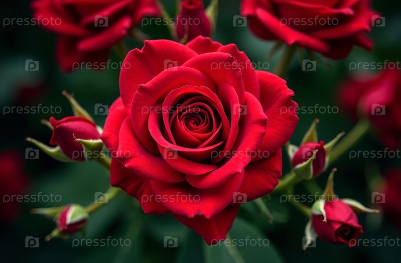 Куст больших красных роз, цветущий цветок снаружи в саду, крупный план. Генеративный искусственный интеллект