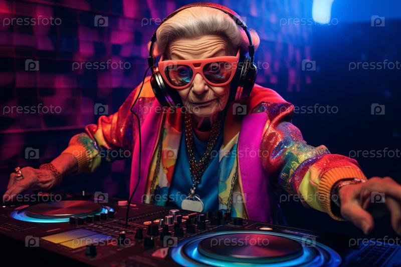 Удивительная бабушка-диджей, пожилая дама, диджей и тусовщица в стиле диско