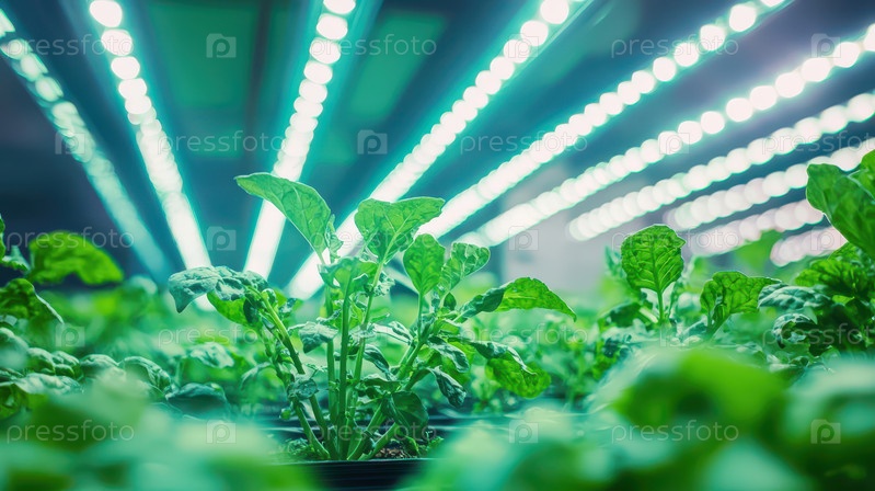 Комнатное гидропонное растение базилика под светодиодными лампами