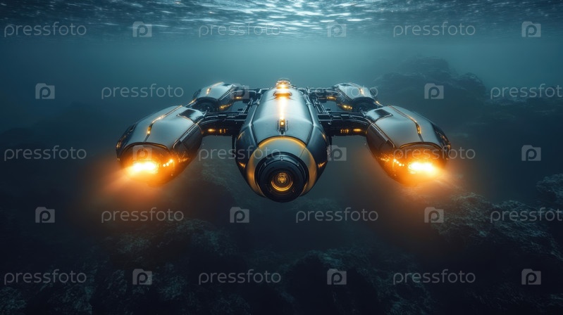 Футуристический подводный дрон, исследующий глубоководные районы