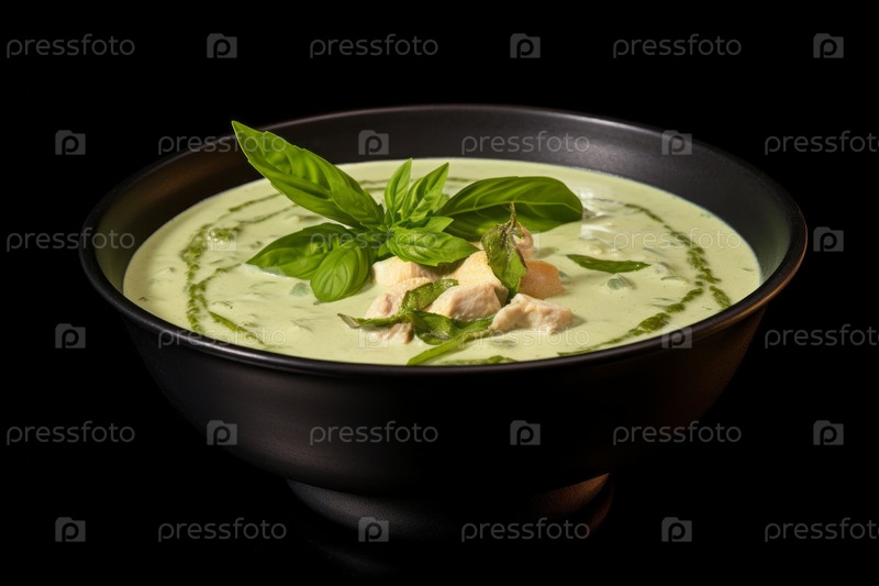 Зеленое карри в керамической миске, сочетание тайского и индийского карри