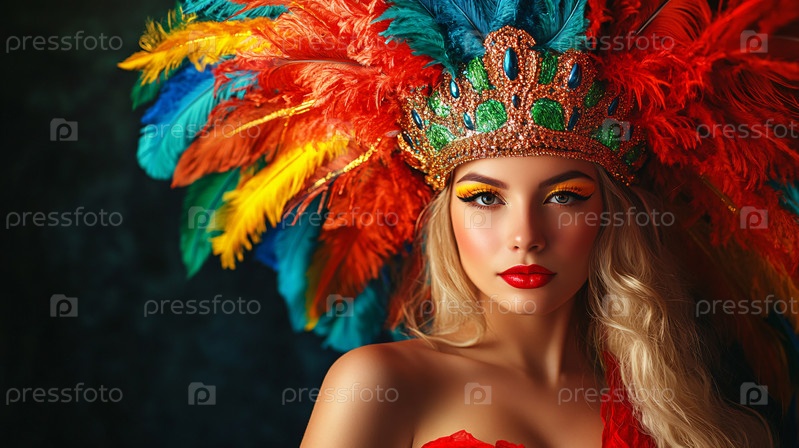 Изысканный красочный головной убор из перьев в честь традиционного яркого культурного фестиваля