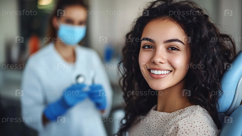 Прием у стоматолога в современной стоматологической клинике для планового осмотра и лечения