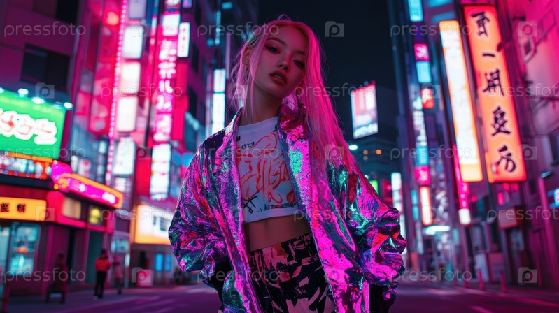 Неоновая мода на оживленной улице Токио ночью
