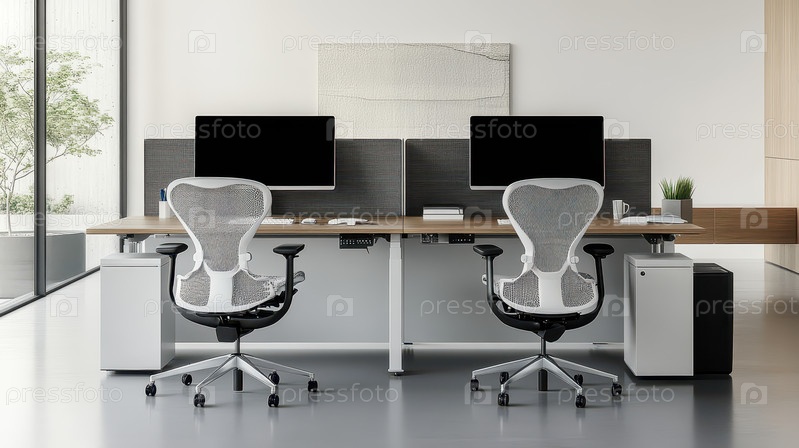 Минималистичный современный офис с эргономичными креслами и чистым дизайном
