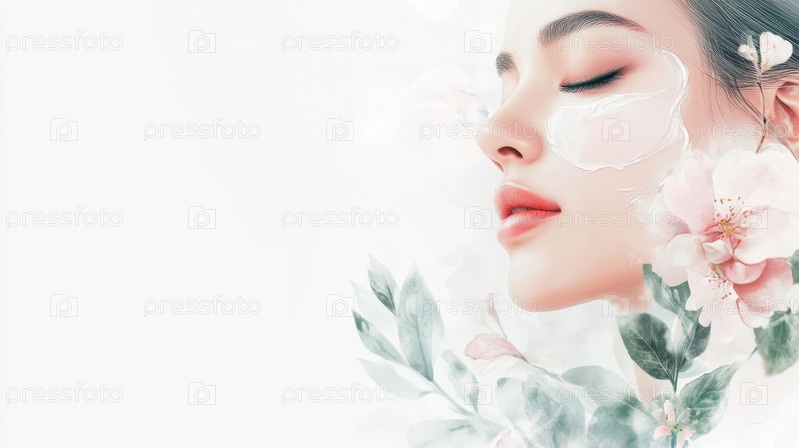 Иллюстрация нежного ухода за кожей с натуральными цветочными элементами для концепций красоты