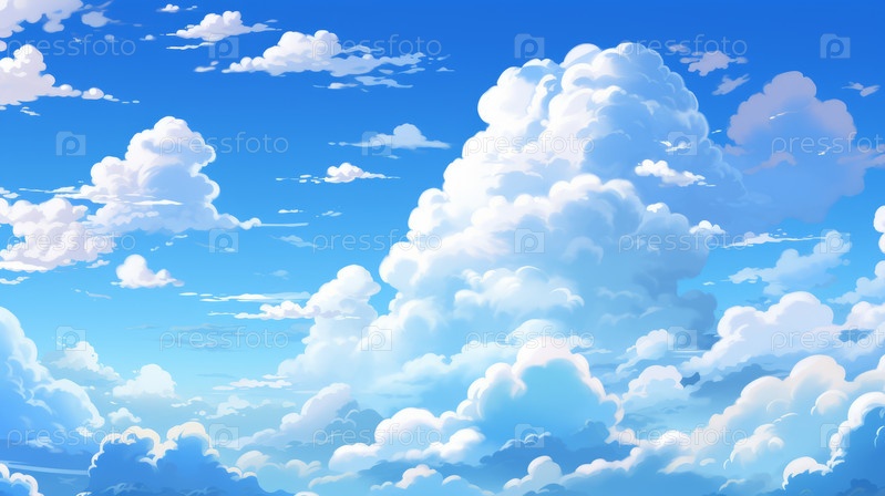 Вид голубого неба и ярких облаков, для фонов, постеров, обложек книг