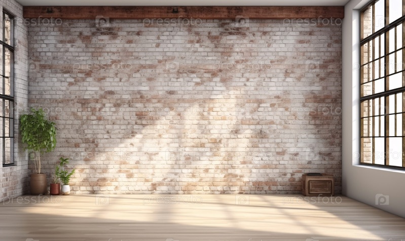 Интерьер комнаты с незаконченным ремонтом, кирпичной стеной и окном